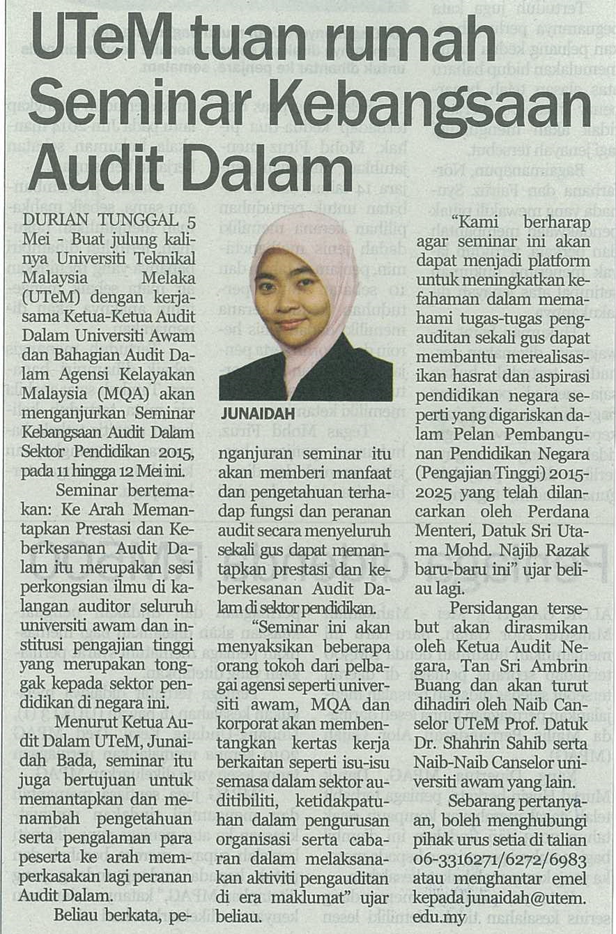 UTeM tuan rumah Seminar Kebangsaan Audit Dalam