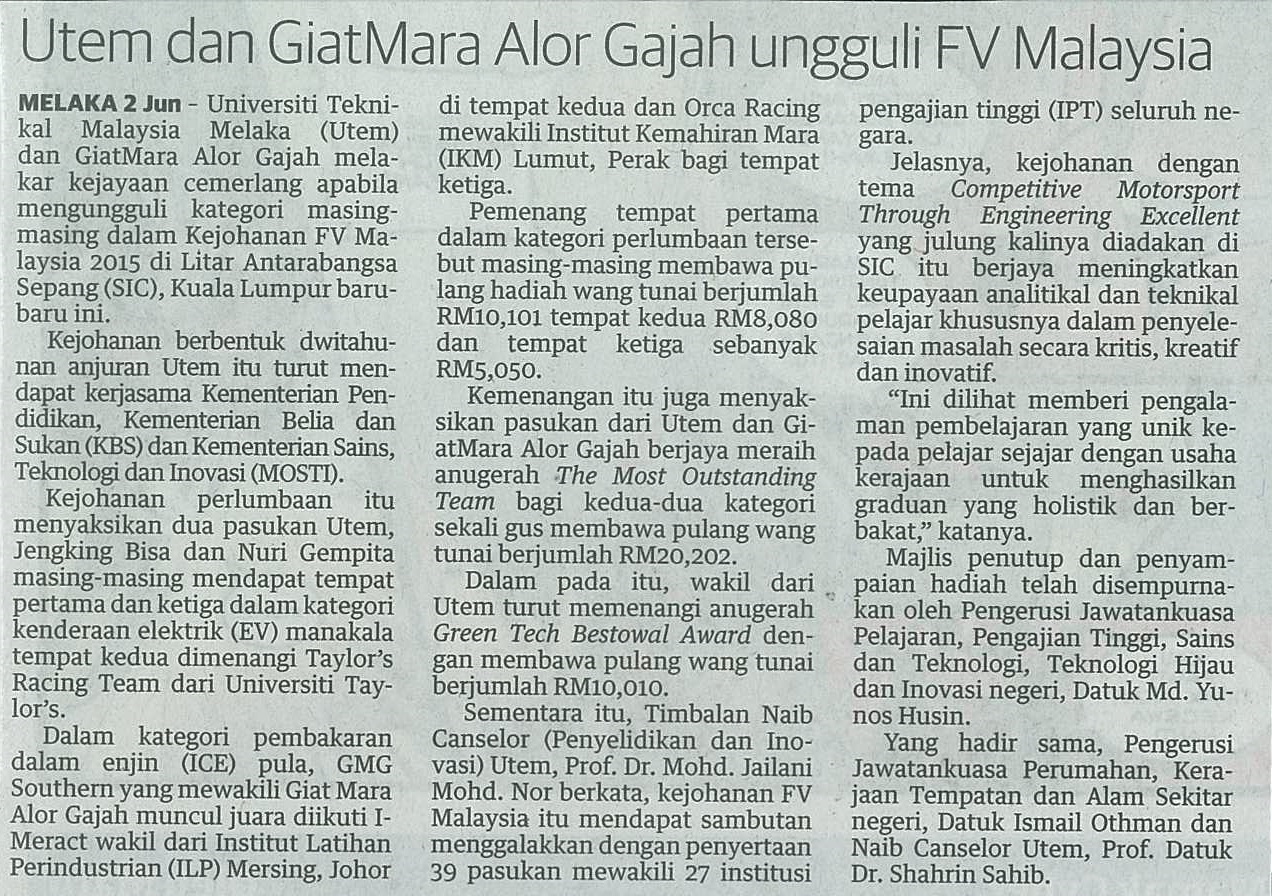 UTeM dan GiatMara Alor Gajah ungguli FV Malaysia
