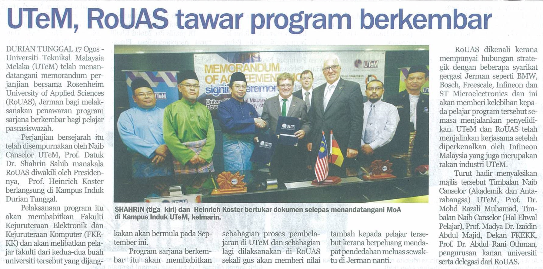 UTeM, RoUAS tawar program berkembar