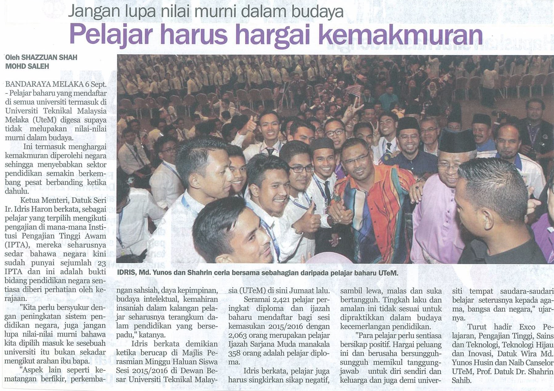 Jangan lupa nilai murni dalam budaya (Pelajar harus hargai kemakmuran)