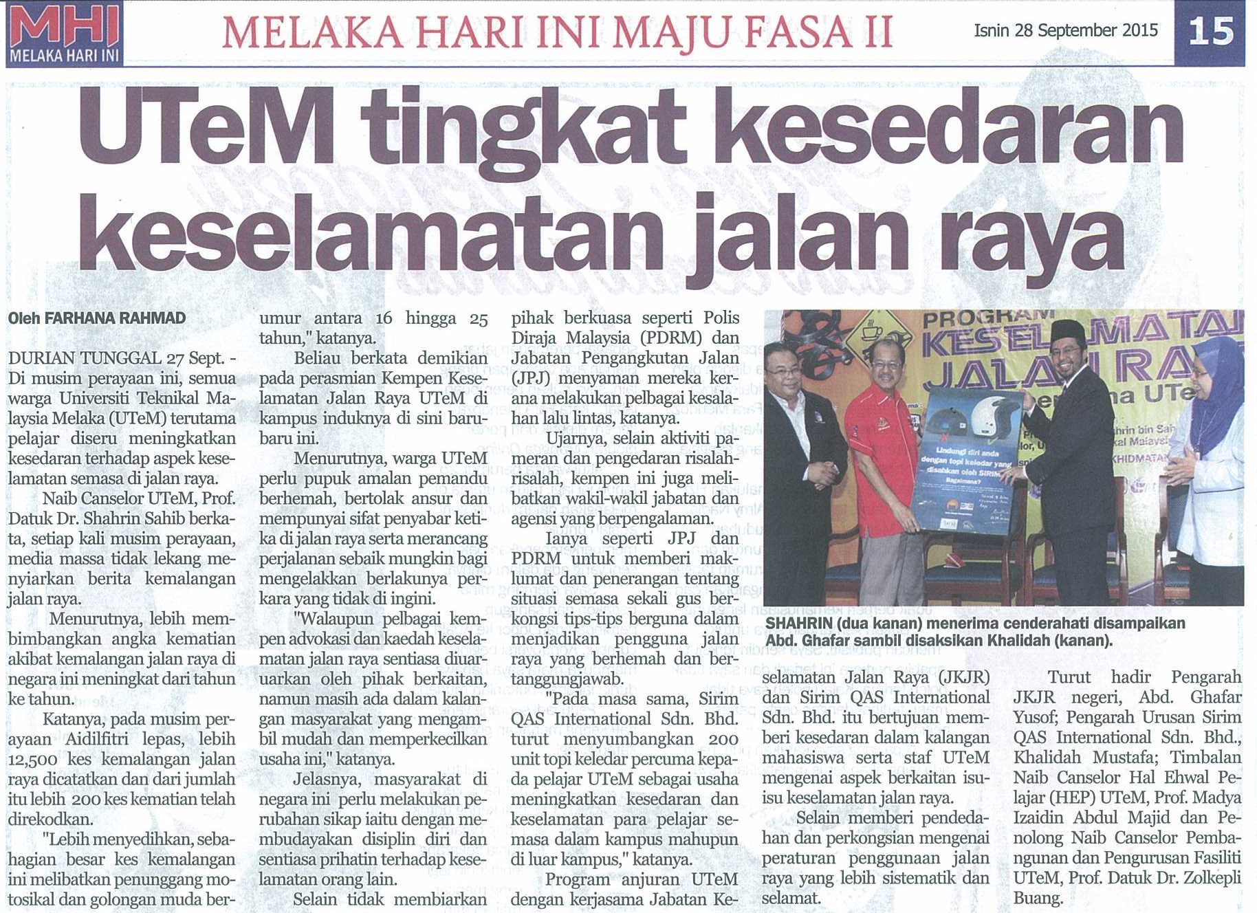 UTeM tingkat kesedaran keselamatan jalan raya