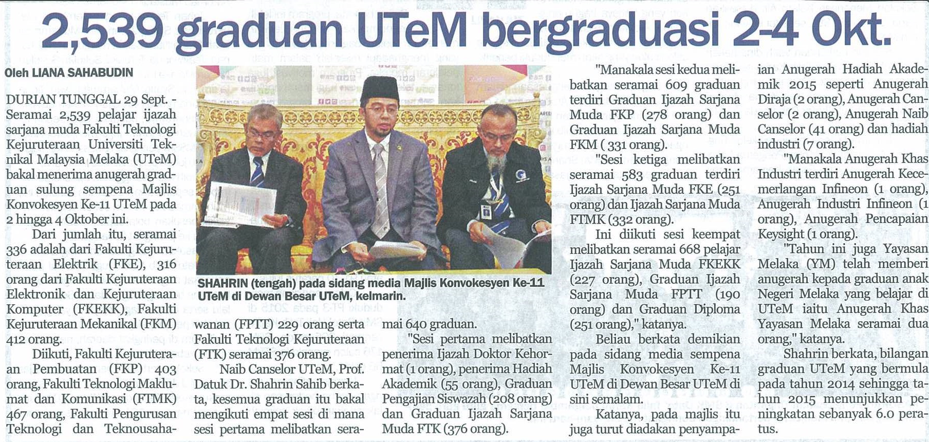 2,539 graduan UTeM bergraduasi 2-4 Oktober