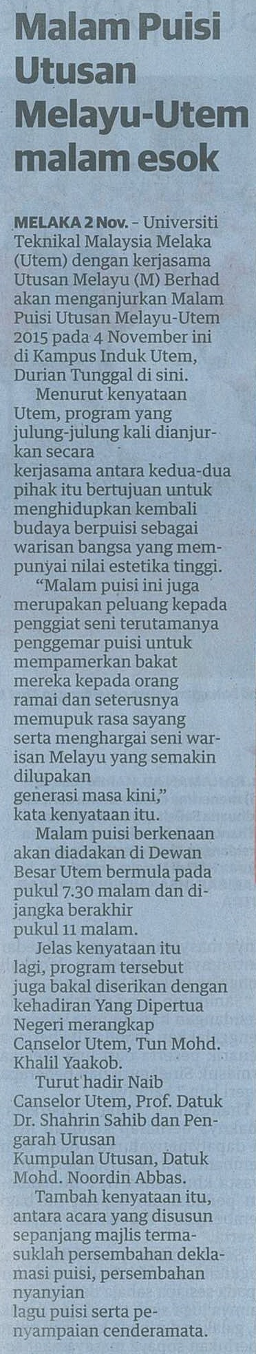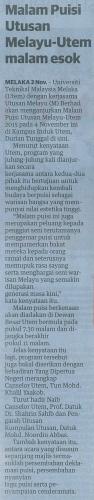 Malam Puisi Utusan Melayu - UTeM malam esok