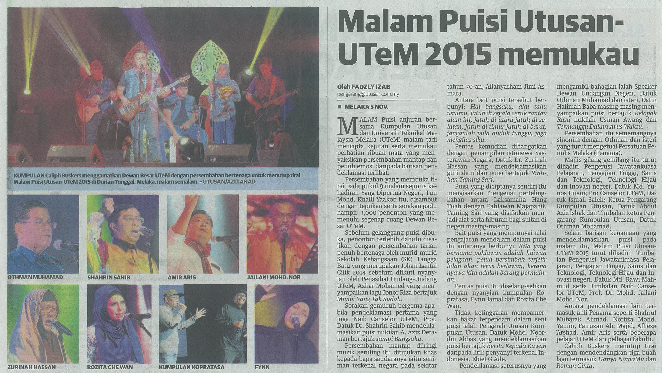 Malam Puisi Utusan - UTeM 2015 memukau