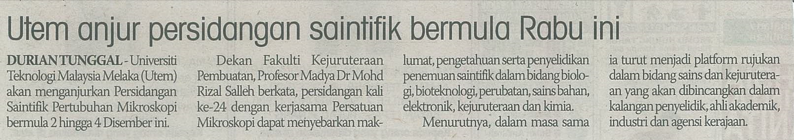 UTeM anjur persidangan saintifik bermula Rabu ini