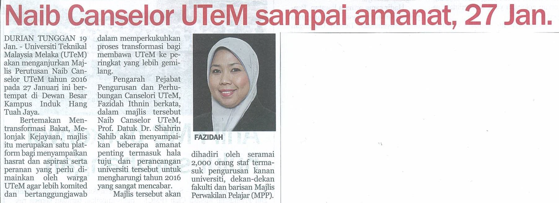 Naib Canselor UTeM sampai amanat, 27 Januari