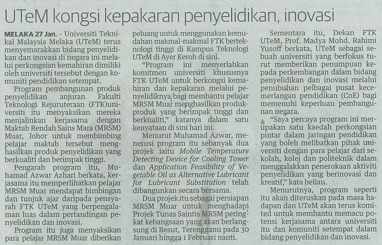 UTeM kongsi kepakaran penyelidikan, inovasi
