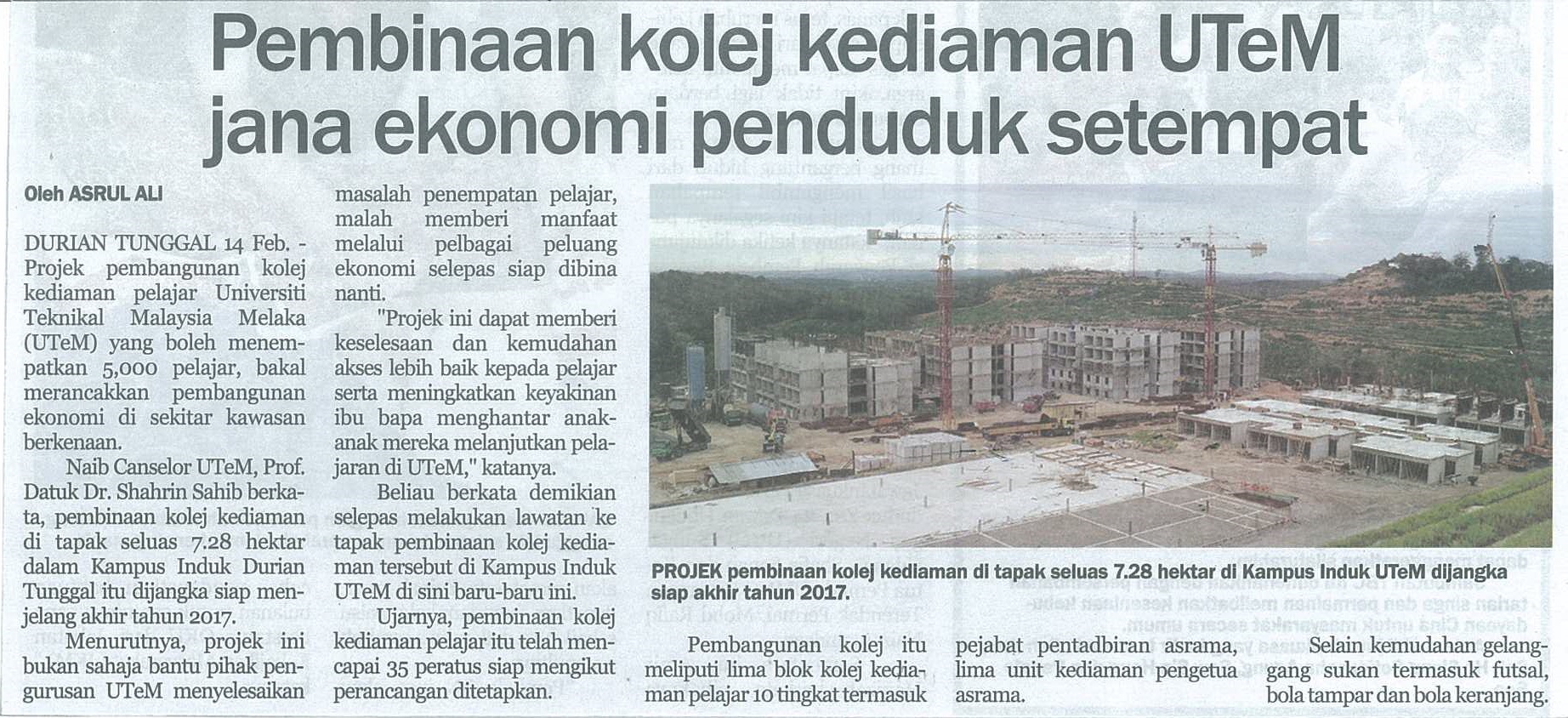 Pembinaan kolej kediaman UTeM jana ekonomi penduduk setempat