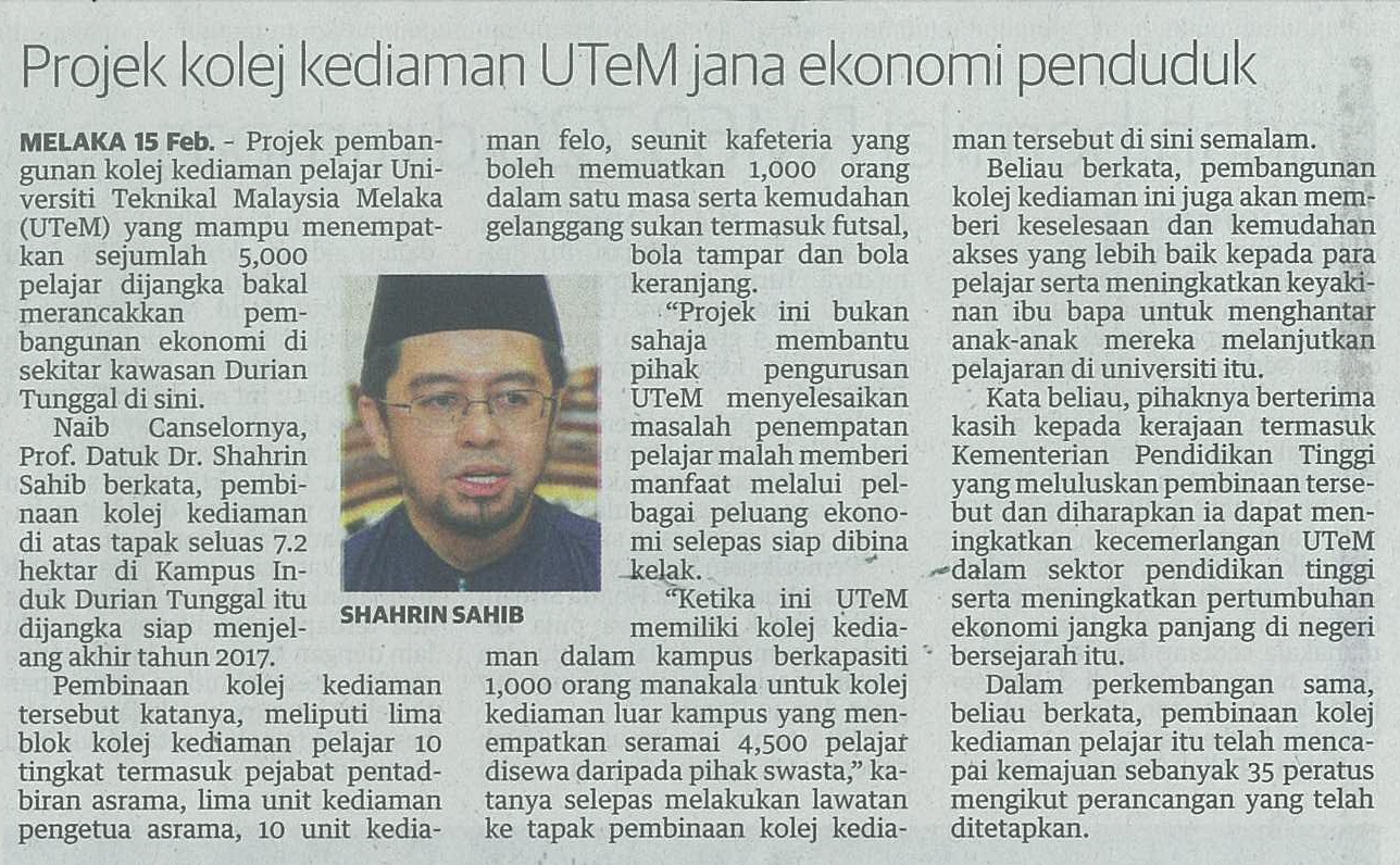 Projek kolej kediaman UTeM jana ekonomi penduduk