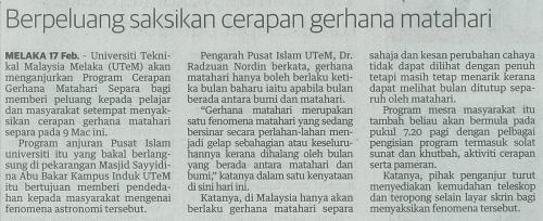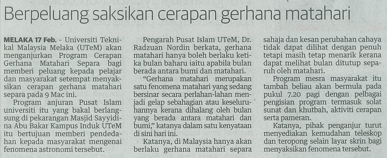 Berpeluang saksikan cerapan gerhana matahari