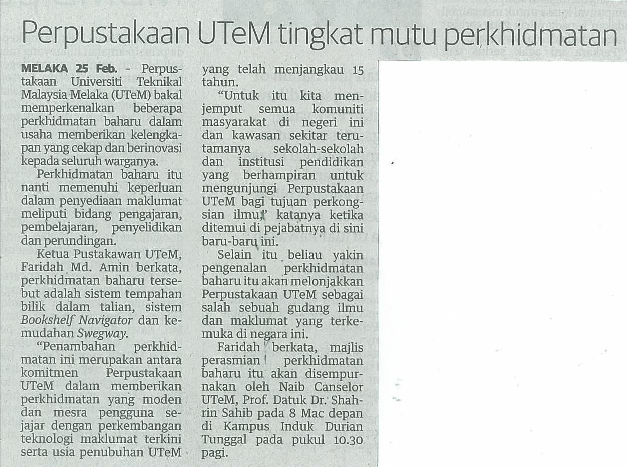 Perpustakaan UTeM tingkat mutu perkhidmatan