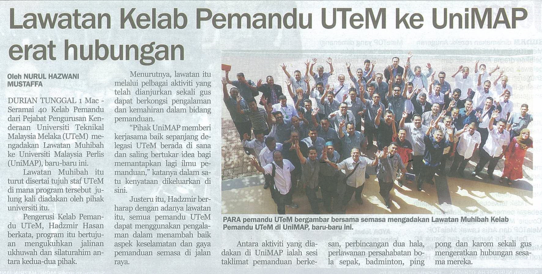 Lawatan Kelab Pemandu UTeM ke UniMAP erat hubungan
