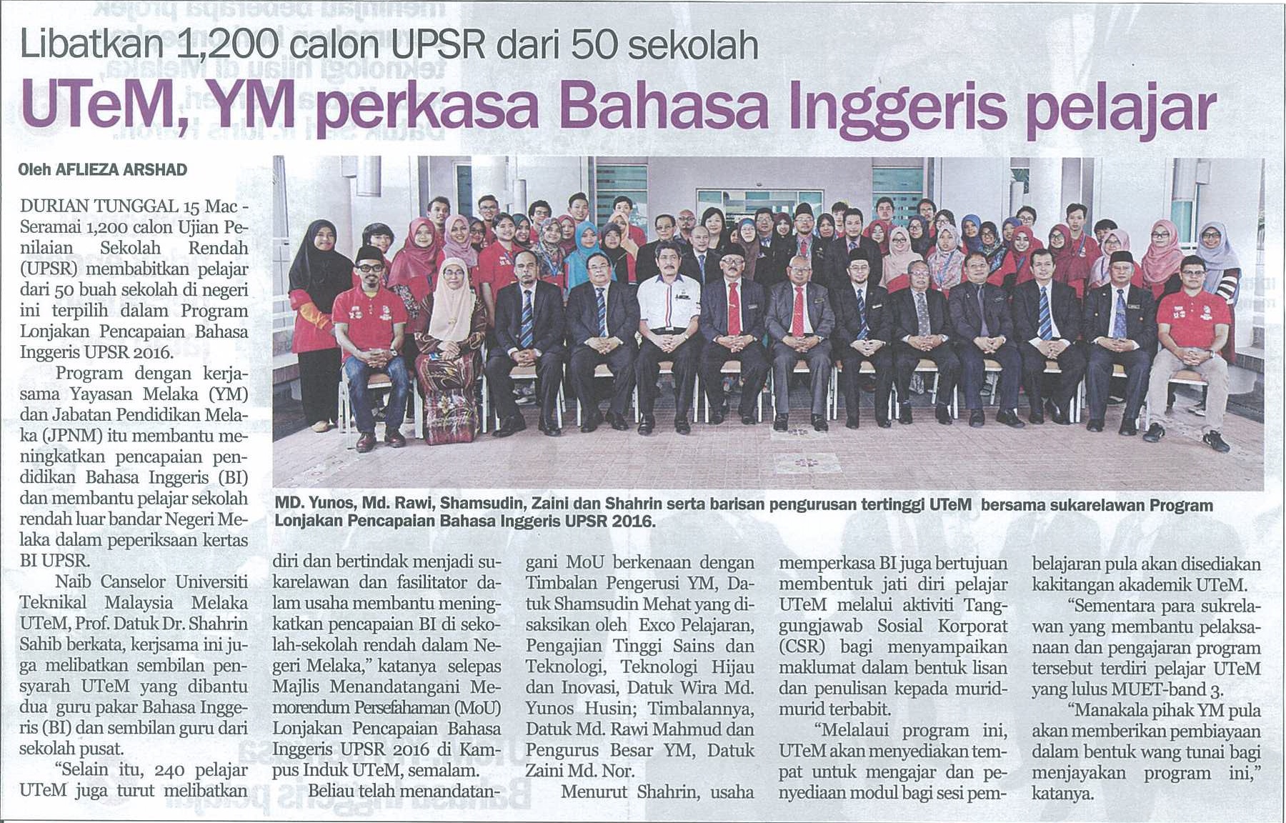 UTeM, YM perkasa Bahasa Inggeris pelajar