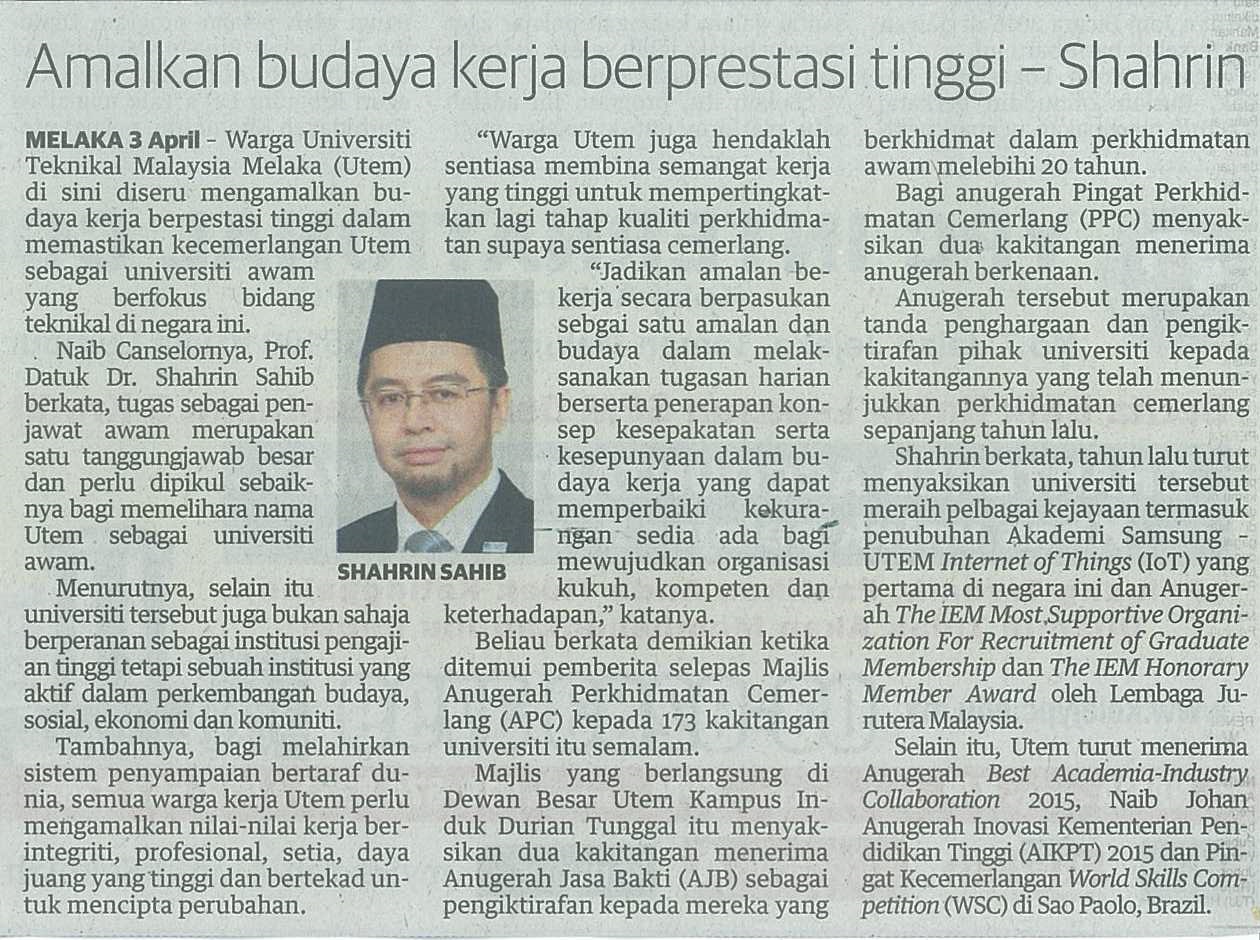 Amalkan budaya kerja berprestasi tinggi - Shahrin