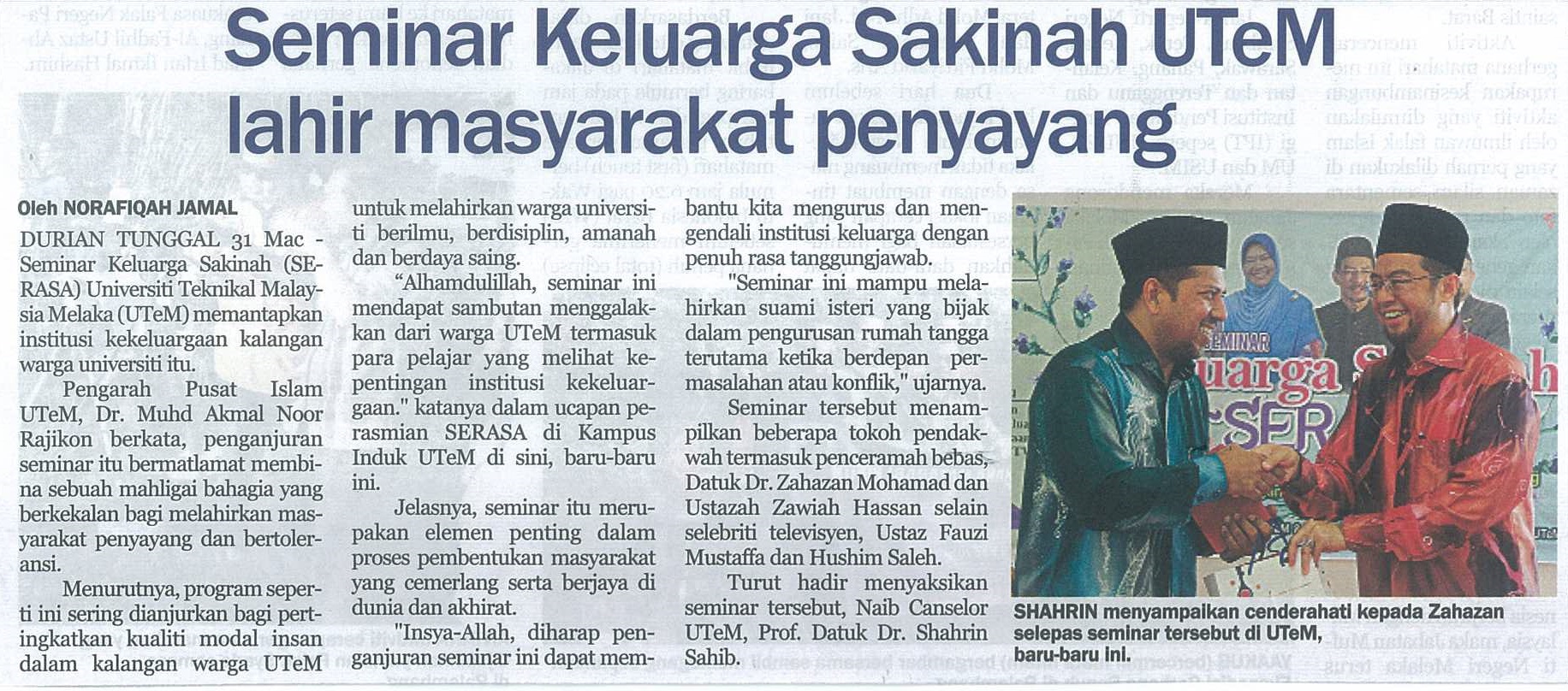 Seminar Keluarga Sakinah UTeM lahir masyarakat penyayang