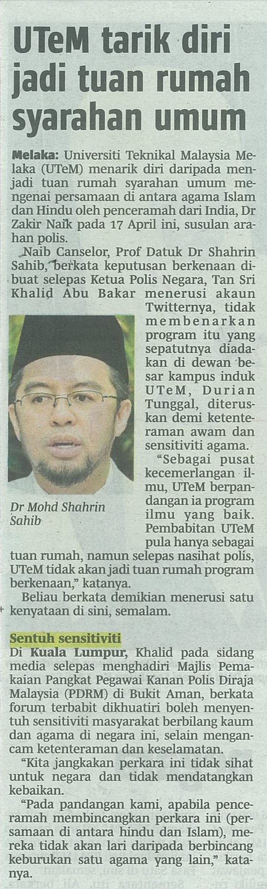 UTeM tarik diri jadi tuan rumah syarahan umum