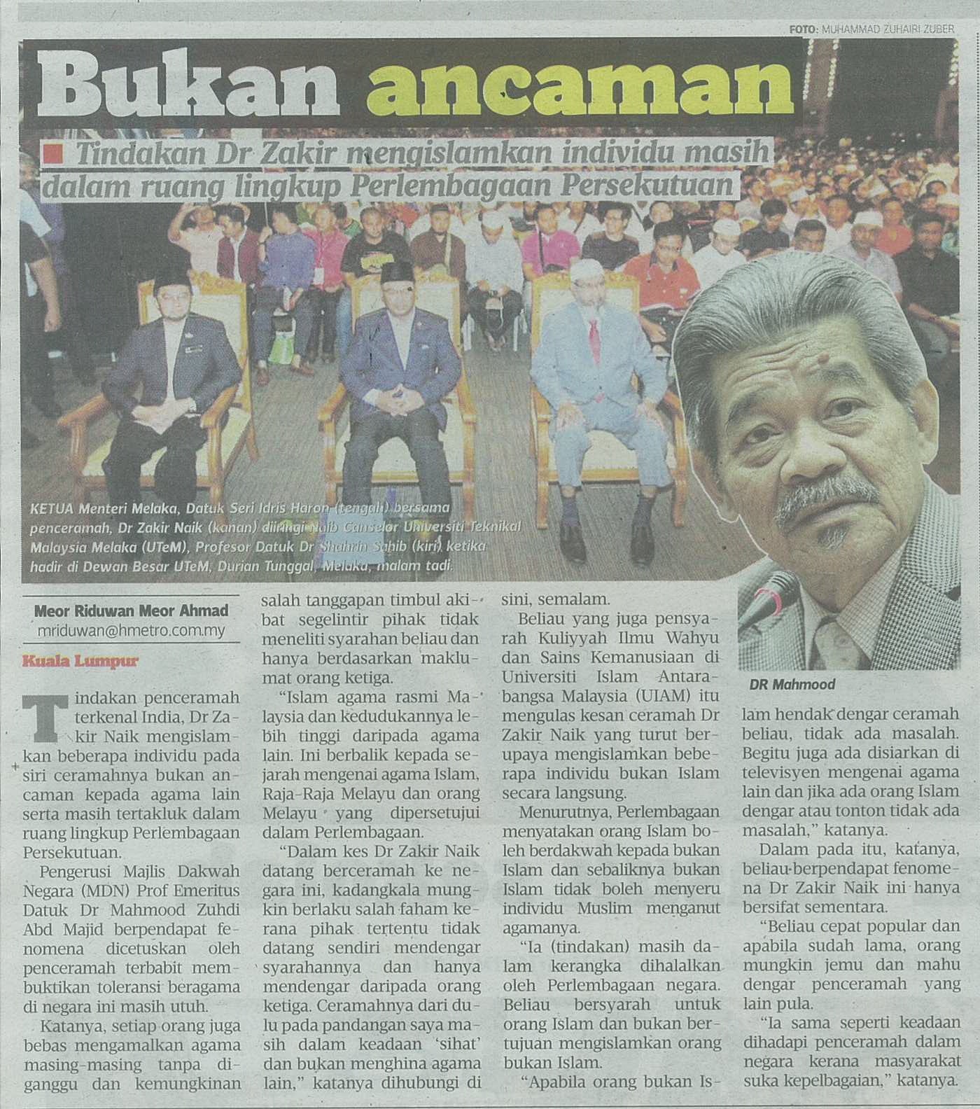 Bukan ancaman (Tindakan Dr. Zakir mengislamkan individu masih dalam ruang lingkup Perlembagaan Persekutuan)
