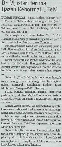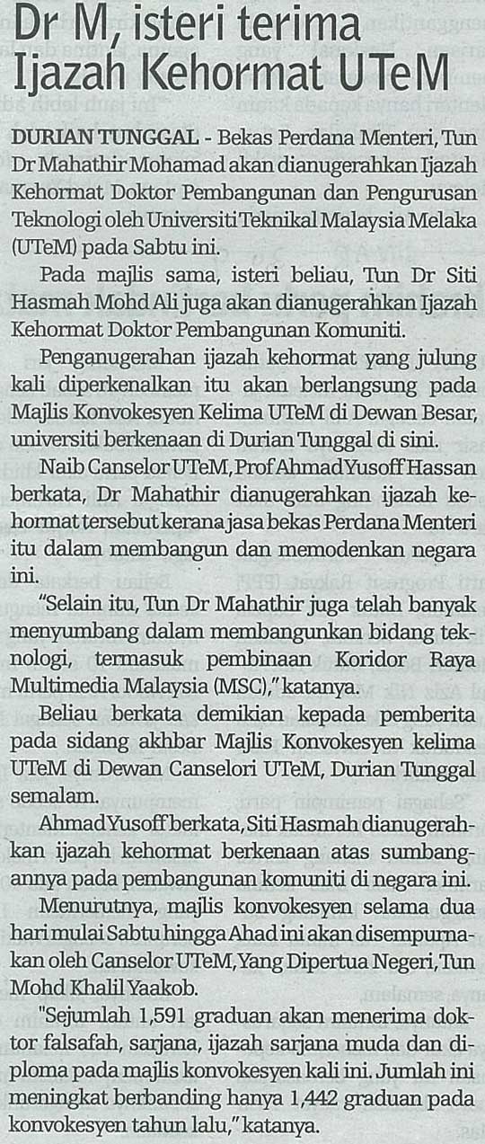 Dr. M dan Isteri Terima Ijazah Kehormat UTeM