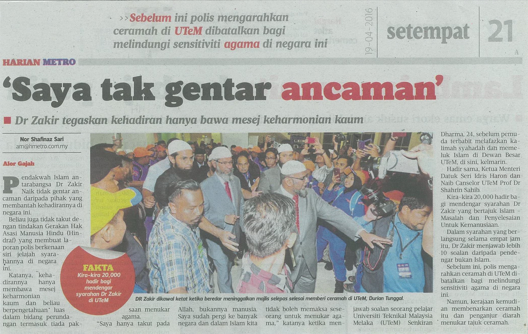'Saya tak gentar ancaman' (Dr. Zakir tegaskan kehadiran hanya bawa mesej keharmonian kaum)