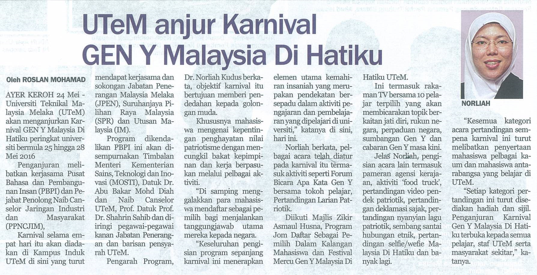 UTeM anjur Karnival GEN Y Malaysia Di Hatiku
