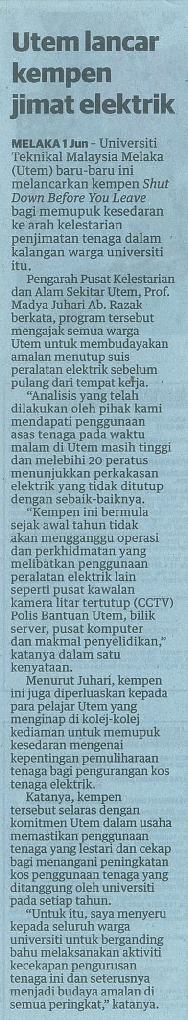 UTeM Lancar kempen jimat elektrik