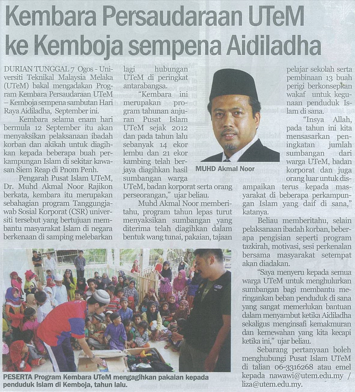Kembara Persaudaraan UTeM ke Kemboja sempena Aidiladha