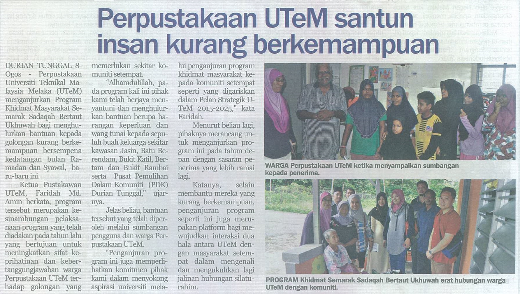 Perpustakaan UTeM santun insan kurang berkemampuan