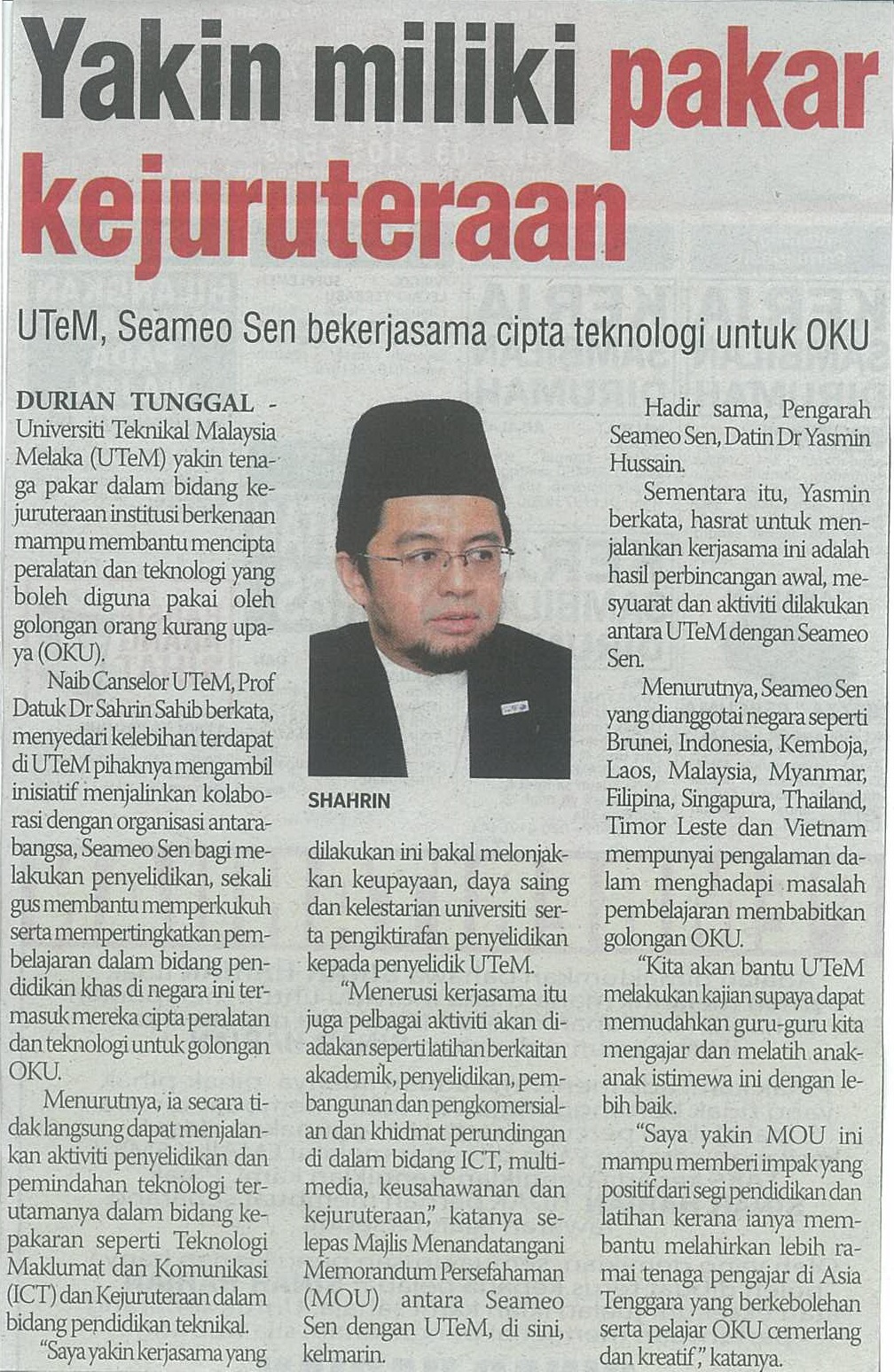 Yakin miliki pakar kejuruteraan (UTeM,SEMEO SEN bekerjasama cipta teknologi untuk OKU)