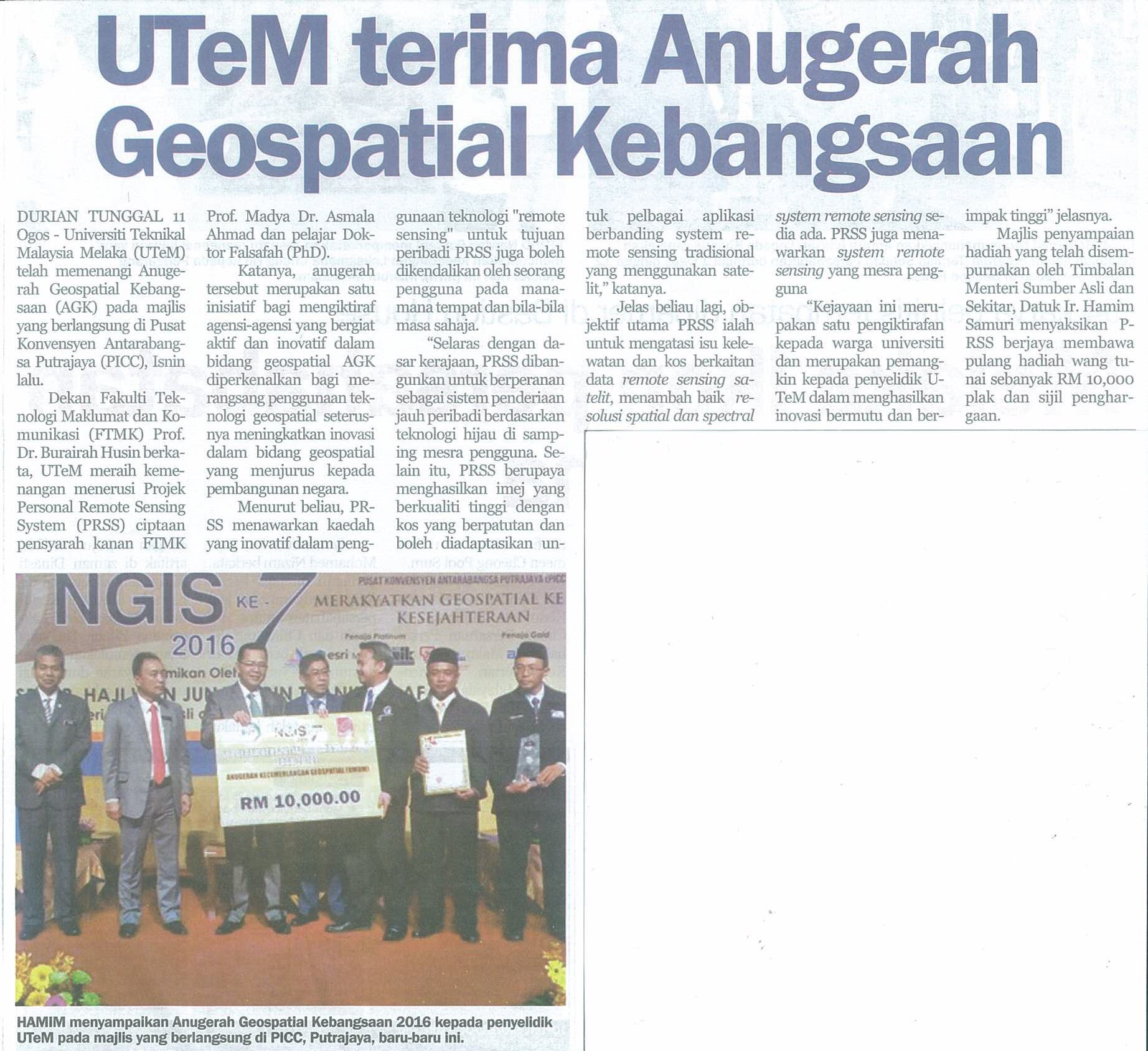 UTeM terima Anugerah Geospatial Kebangsaan