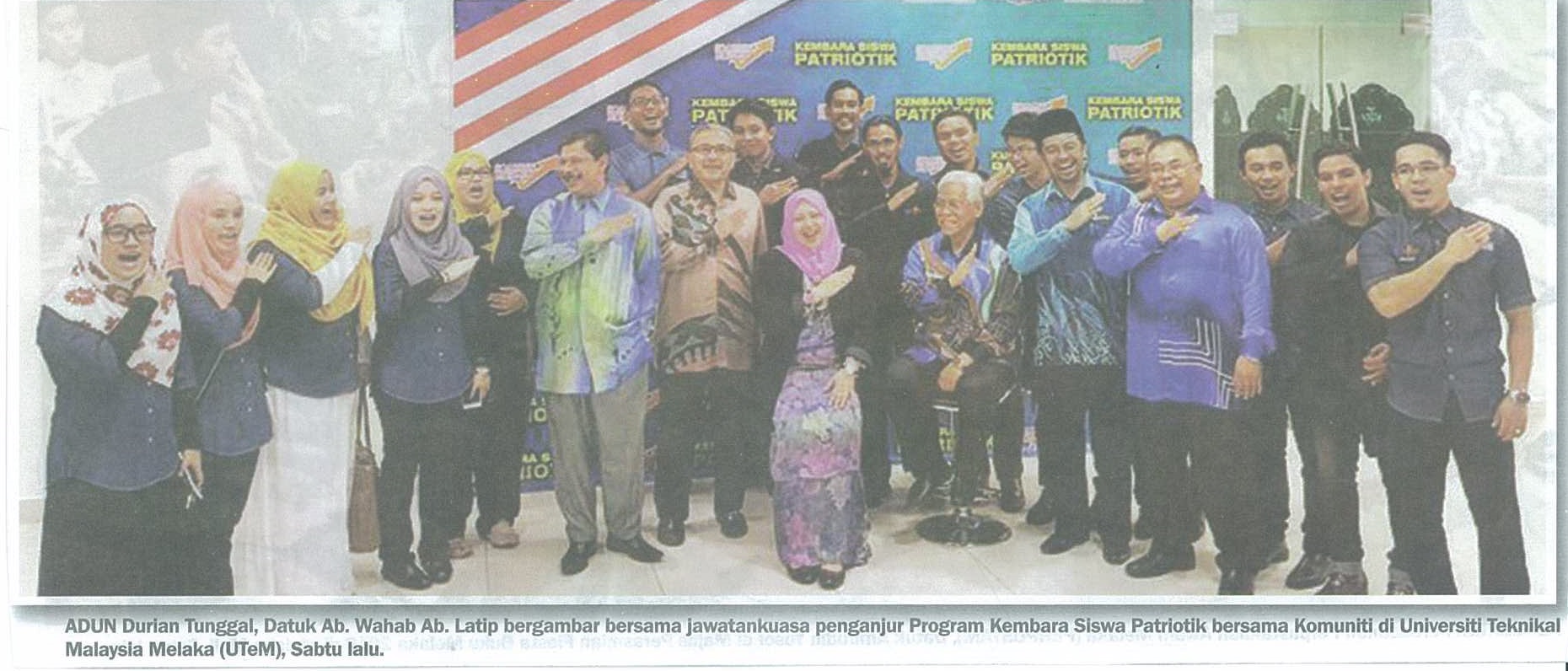 ADUN Durian Tunggal, Datuk Ab. Latip bergambar bersama jawatankuasa penganjur Program Kembara Siswa Patriotik bersama Kouminiti di UTeM