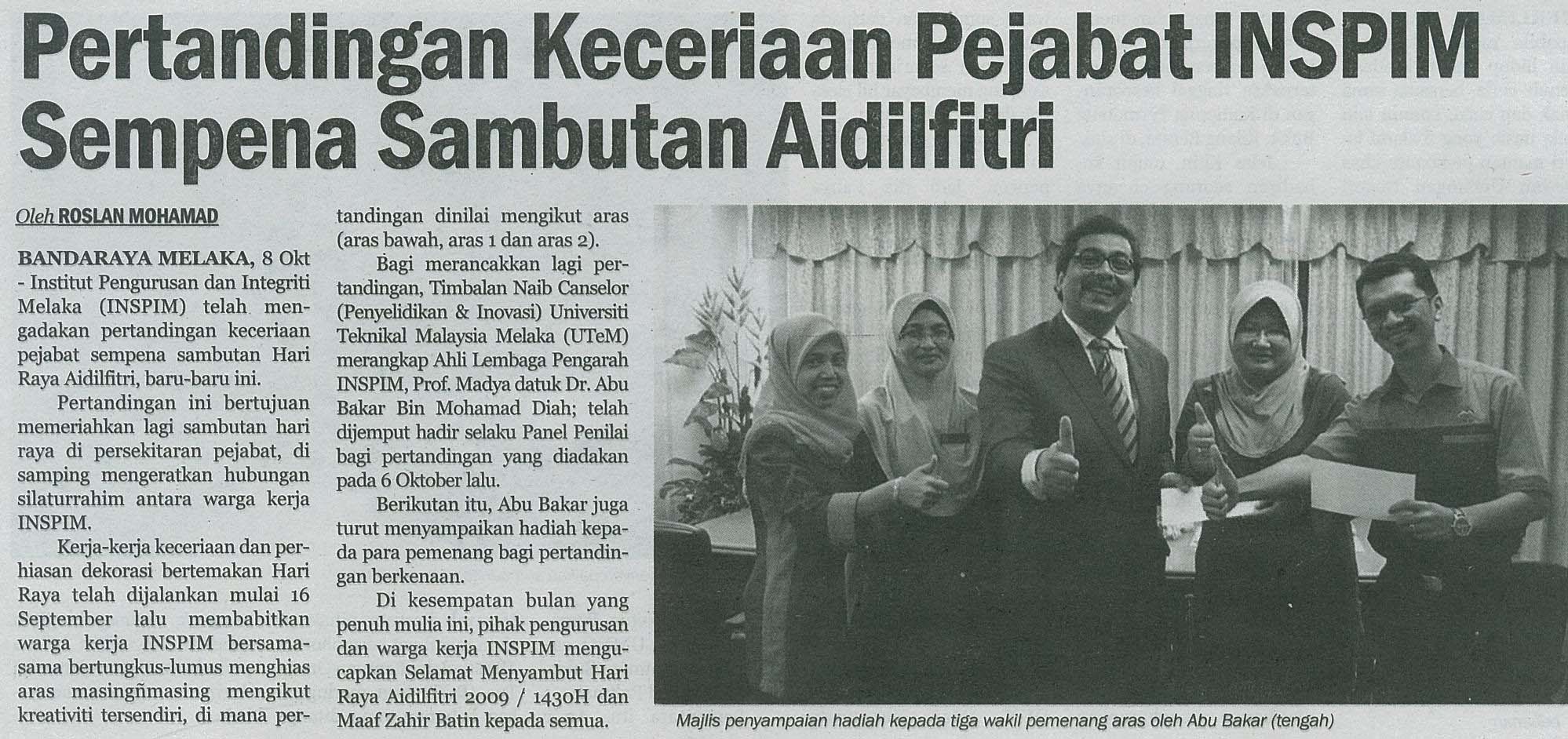 INSPIM Anjurkan Pertandingan Keceriaan Pejabat Sempena Aidilfitri