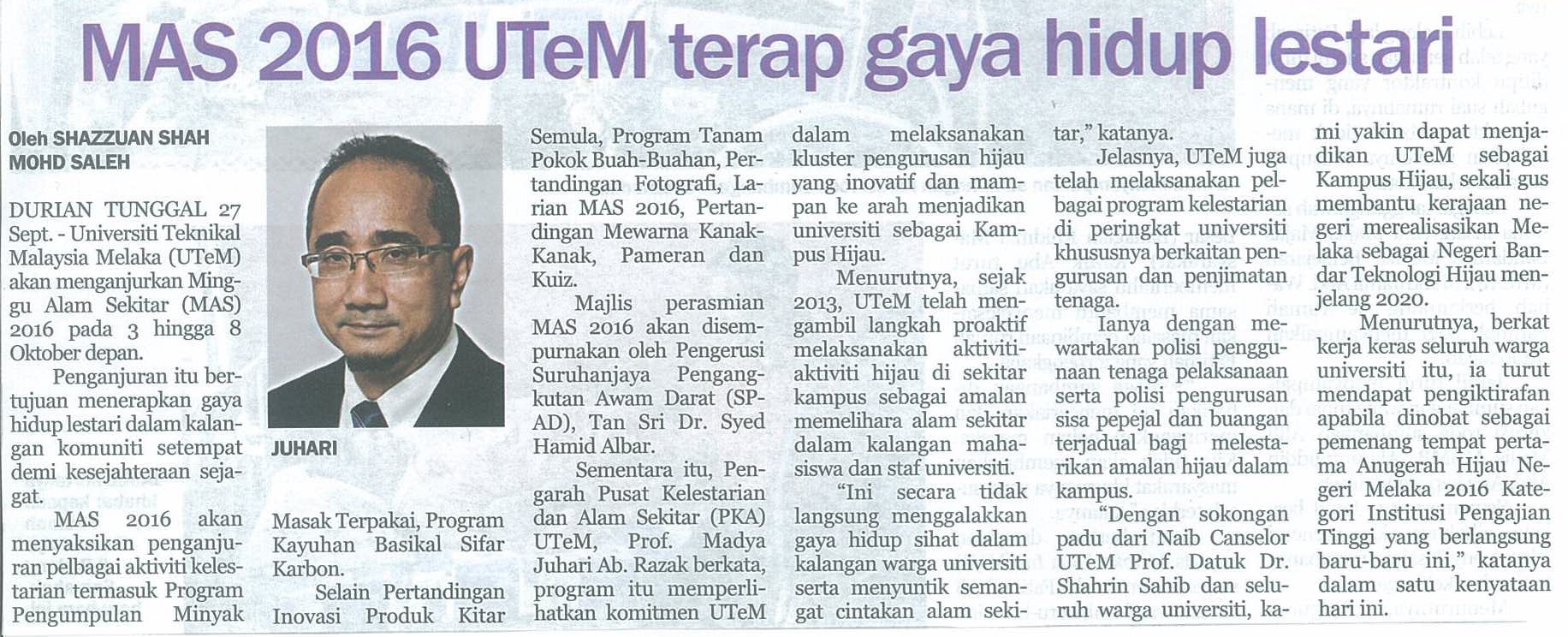 MAS 2016 UTeM terap gaya hidup lestari