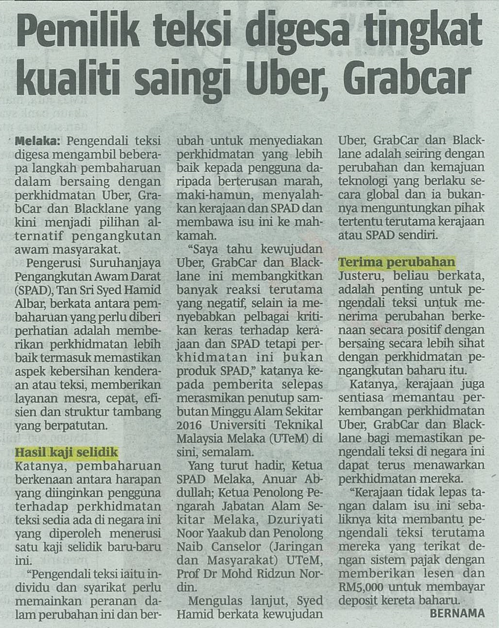 Pemilik teksi digesa tingkat kualiti saingi Uber, Grabcar