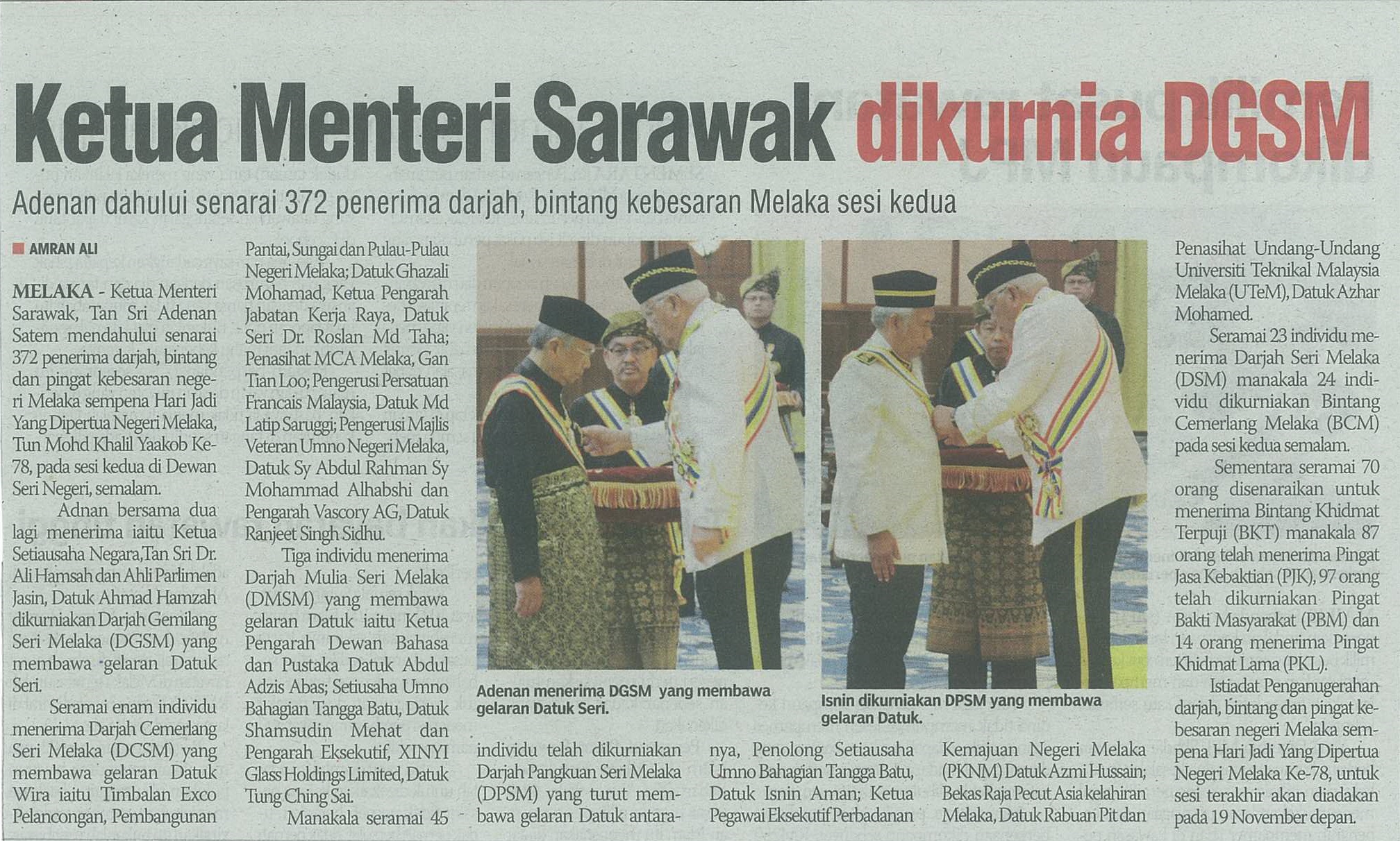 Ketua Menteri Sarawak dikurnia DGSM