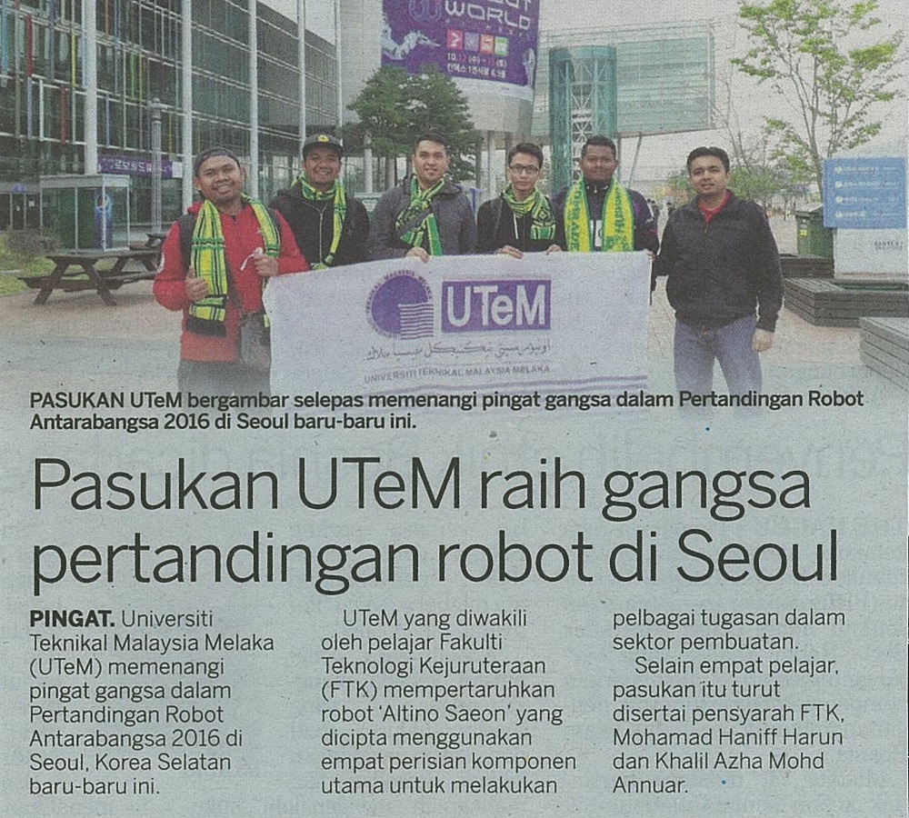 Pasukan UTeM raih gangsa pertandingan robot di Seoul