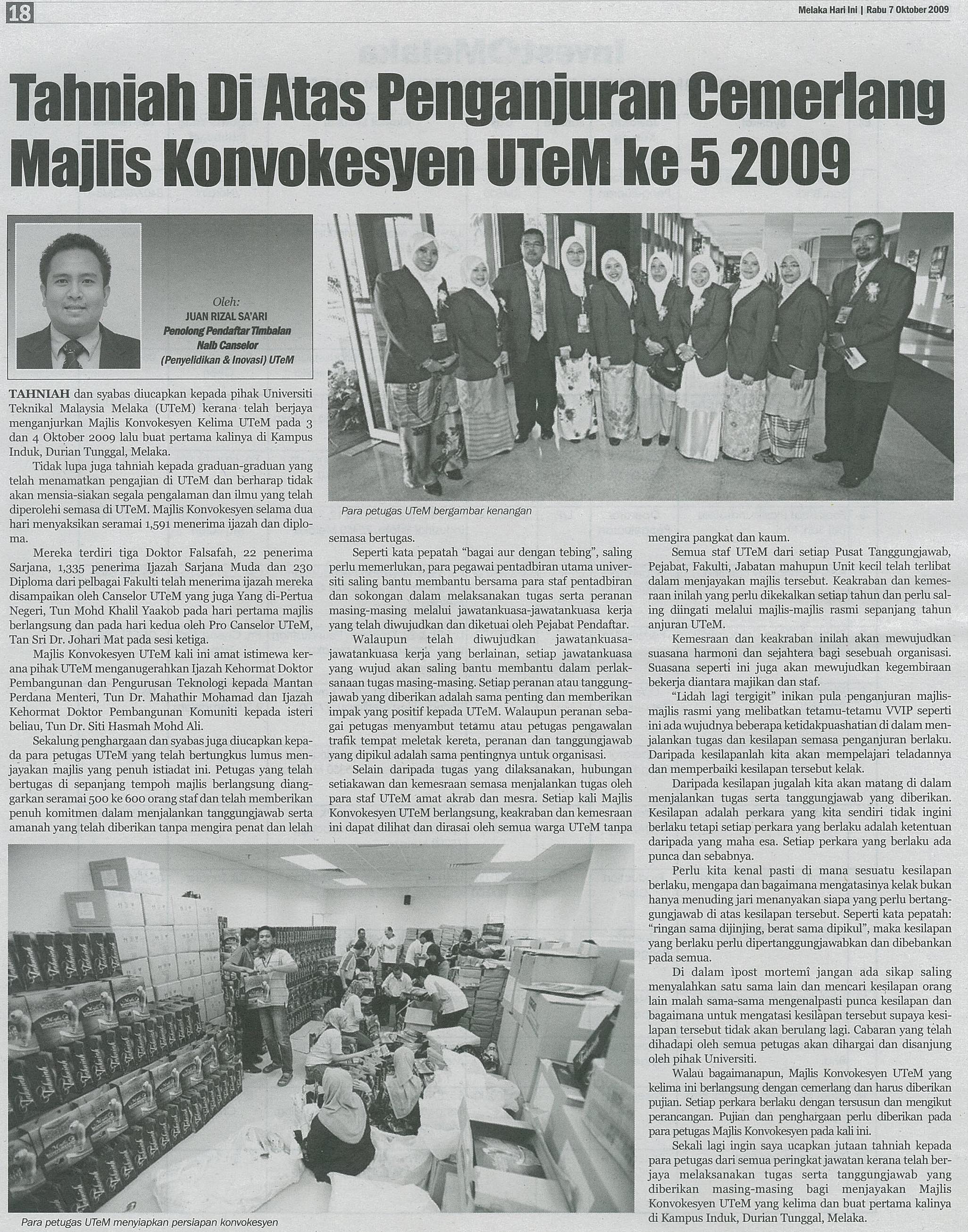 Tahniah atas penganjuran Majlis Konvokesyen UTeM ke 5 2009