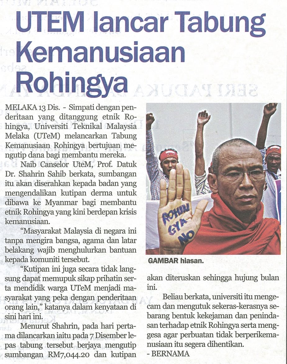 UTeM Lancar Tabung Kemanusiaan Rohingya