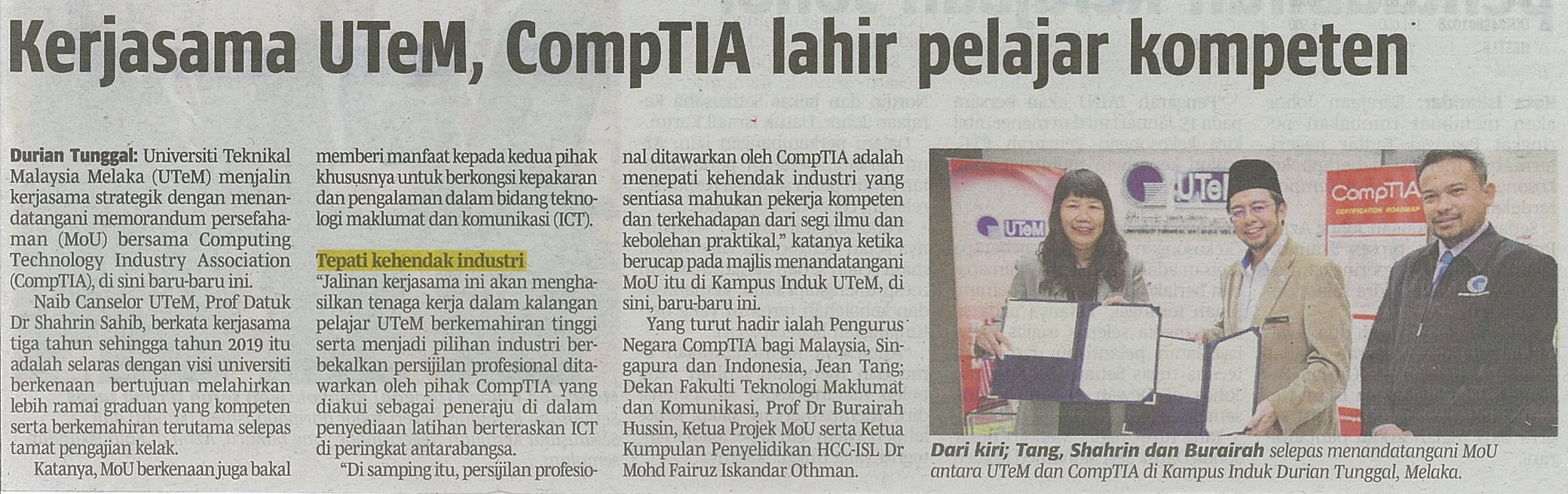 Kerjasama UTeM, CompTIA lahir pelajar kompeten