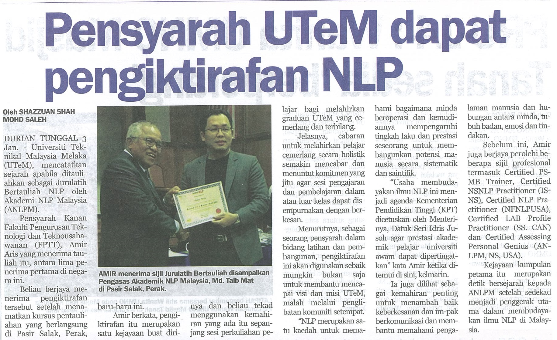 Pensyarah UTeM dapat pengiktirafan NLP
