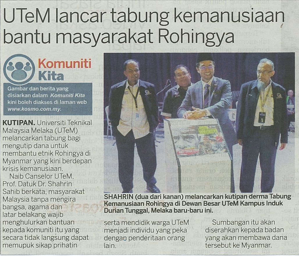 UTeM lancar tabung kemanusiaan bantu masyarakat Rohingya