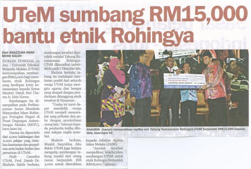 UTeM Sumbang RM15,000 Bantu Etnik Rohingya