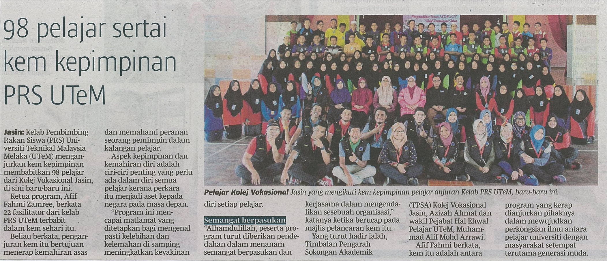 98 pelajar sertai kem kepimpinan PRS UTeM