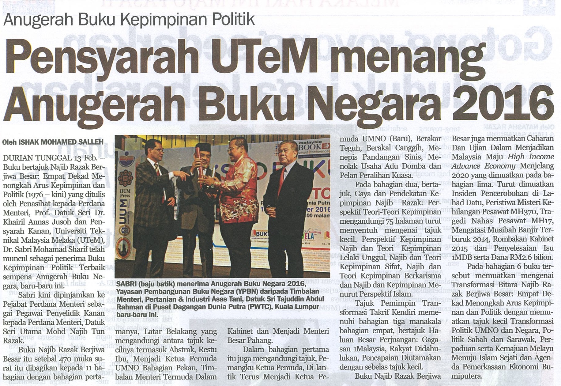 Pensyarah UTeM menang Anugerah Buku Negara 2016