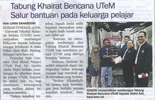Tabung Khairat Bencana UTeM Salur bantuan pada keluarga pelajar