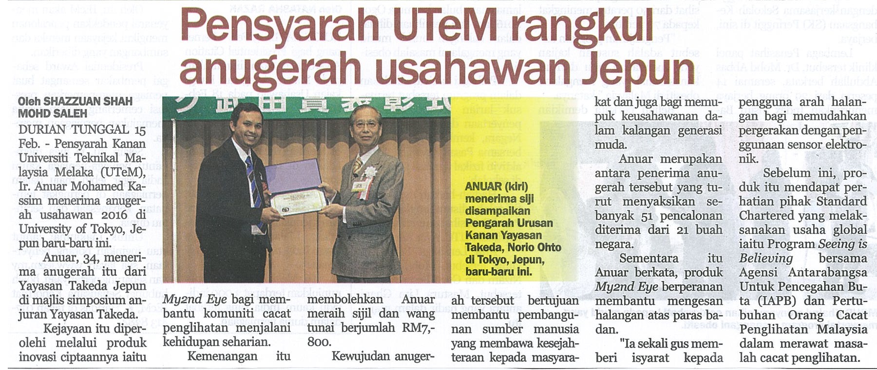 Pensyarah UTeM rangkul anugerah usahawan Jepun