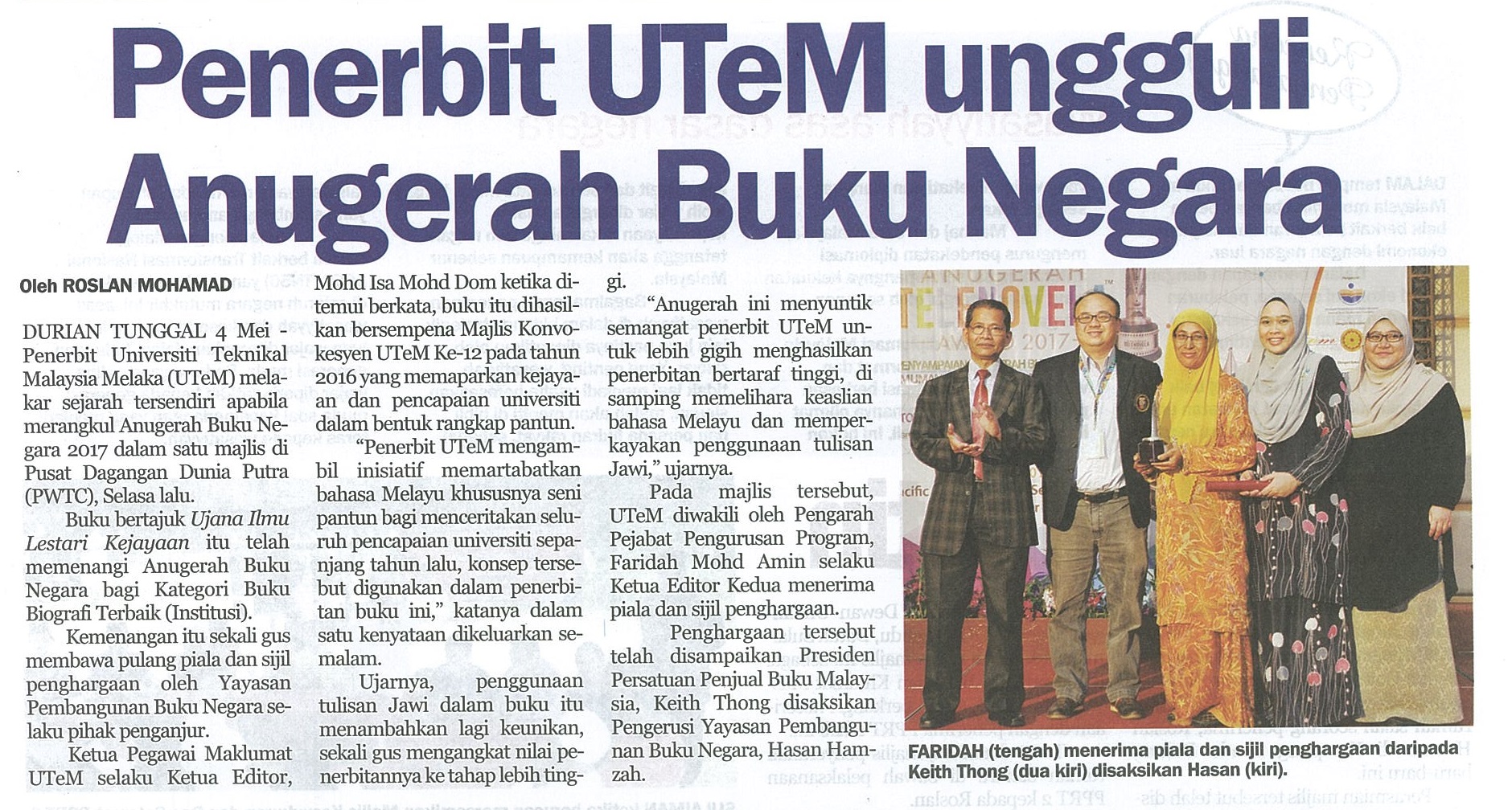 Penerbit UTeM ungguli Anugerah Buku Negara
