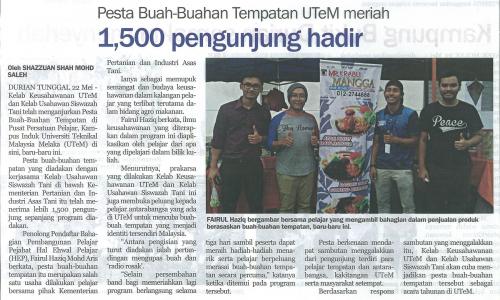 Pesta Buah-Buahan Tempatan UTeM meriah 1500 pengunjung hadir