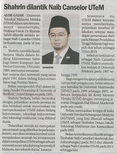 Shahrin dilantik Naib Canselor UTeM