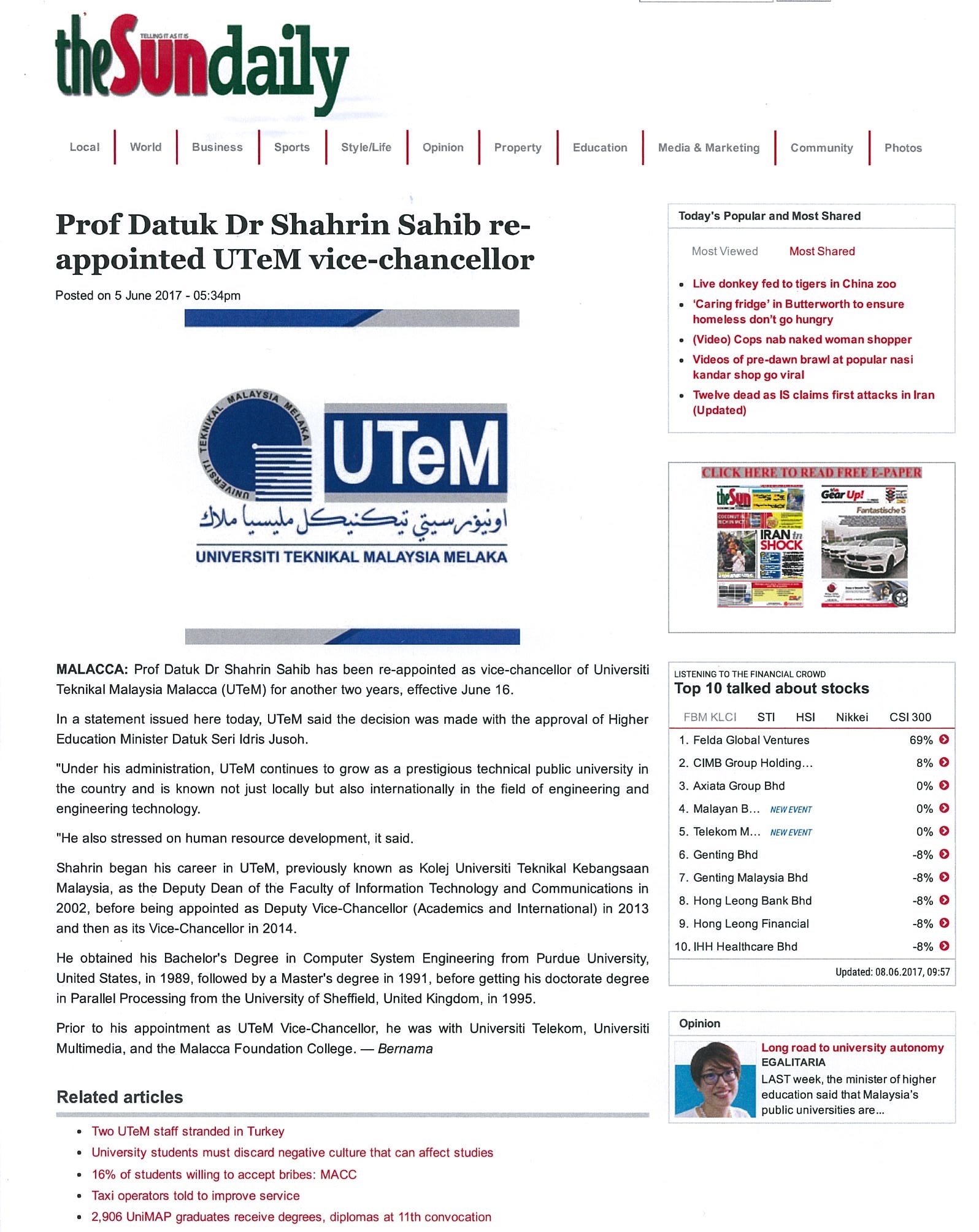 UTeM In Newspapers