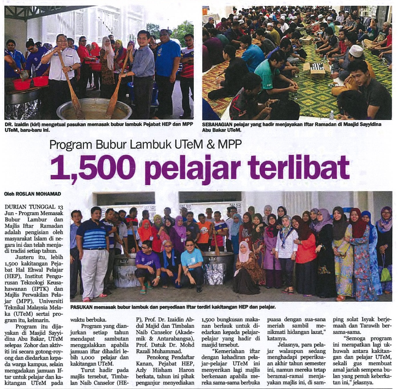 Program Bubur Lambuk UTeM & MPP 1500 pelajar terlibat